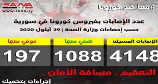 דמשק – סאנא משרד הבריאות ברפובליקה הערבית הסורית דיווח כי 46 בני אדם חדשים נדבקו בווירוס הקורונה, בנוסף ל- 14אשר החלימו ו- 3 חולים מתו. משרד הבריאות ציין כי מניין …