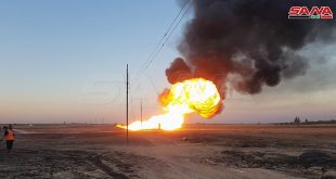דמשק- סאנא צוותי הכיבוי וההגנה האזרחית כיבו את האש שפרצה במוביל הגז הערבי שבין אזורי אלד’מיר ועדרא בצורה מלאה, וזאת לאחר שנחשפה להתקפה טירוריסטית בשחרית היום. שר הנפט והמשאבים המהנדס …