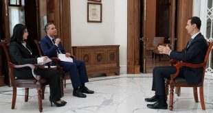 הנשיא אל-אסד בראיון עם שני ערוצי הטלוויזיה הסורית א-סוריה ואל-אח’באריה