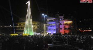 הארת עץ המולד הגדול בכיכר אלעבאסיין שבדמשק