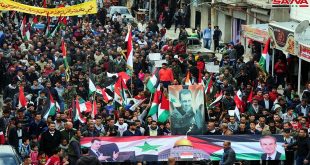 פאתי דמשק/קונייטרה – סאנא גורמים ופעילים פלסטינים וסורים ארגנו היום בסביבות דמשק, תהלוכה המונית לציון יום האדמה ובמחאה על הצהרת הנשיא האמריקני דונאלד טראמפ בדבר הגולן הסורי הכבוש. באי המאורע …
