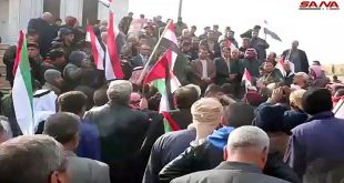 א-רקה – סאנא תושבי מחוז א-רקה ביצעו בעיירה א-סבח’ה עצרת מחאה נגד הממשל הטורקי שאיים לפתוח בתוקפנות נגד שטחי סוריה. הם שייטו ברחובות של העיירה כשבידיהם דגל המולדת ותמונת הנשיא …
