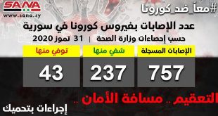 דמשק – סאנא משרד הבריאות של הרפובליקה הערבית הסורית מסר היום כי 19 בני אדם לקו בוויירוס הקורונה המתחדש בנוסף ל- 8 אחרים אשר החלימו ו-2 שנפטרו. המשרד הבהיר בהודעה …