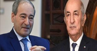 אלג’יריה – סאנא נשיא אלג’יריה עבד אלמדג’יד טבון קיבל את פניו של ד”ר פייסל אל -מוקדאד שר החוץ והמהגרים שהעביר לו את ברכותיו של הנשיא בשאר אל-אסד לרגל 60 שנה …