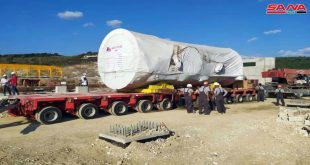 סאנא -לטקיה המשלוח הרביעי של העומסים הכבדים, הכוללים את השנאי הראשי של קבוצת הקיטור, הגיעה היום לאתר תחנת הכוח ראסתין בלאטקיה. המהנדס נזיר דנוראה מנהל הפרויקטים של תחנת הכוח ראסתין, …