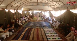 דיר א-זור – סאנא השבטים בוואדי הפרת בעיר אל-מיאדין שבפרבר דיר א-זור קיימו כינוס תחת כותרת “סוריה מאוחדת ועצמאית” במהלכו שמו דגש על ההתלכדות הלאומית של בני השבטים, במאבק ההגנה …