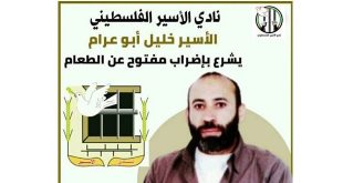 אל-קודס הכבושה – סאנא האסיר הפלסטיני ח’ליל אבו עראם הכריז היום כי פתח בשביתת הרעב שלו במחאה על פשעי הכיבוש הישראלי הנמשכים נגד האסירים. סוכנות ו’פא צטטה את מועדון האסיר …