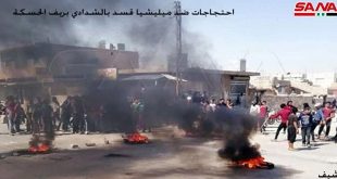 אל-חסקה – סאנא מקורות מקומיים מסרו לכתבת סאנא כי חמושים של מיליציה קסד פשטו על הכפר אבו ע’דיר שבדרום-מזרח אל-קחטאנייה בפרבר אל-חסכה הצפוני-מזרחי, תוך ירי כדורים ללא אבחנה כדי להפחיד …