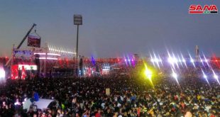 המוני תושבים התקהלו באצטדיון אל-באסל שבעיר לטקיה כדי לחגוג את זכייתו של ד”ר בשאר אל-אסד בנשיאות הרפובליקה הערבית הסורית