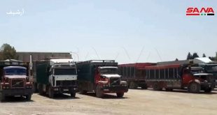 אל-חסכה – סאנא מקורות מקומיים במחוז אל-חסכה ובדיוק בכפר א-סו’ידיה, מסרו כי טור בן 38 משאיות ומיכלי אמריקניים העמוסים בחיטה ובנפט השדודים מאזור אל-ג’זירה הסורית, יצאו היום בצהרים דרך מעבר …