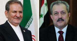 דמשק – סאנא ראש הממשלה המהנדס חוסין ערנוס קיבל היום שיחה טלפונית מסגן הנשיא האיראני יצחק ג’יהאנגרי אשר בירך למהנדס ערנוס על כהונתו החדשה כראש ממשלה. ג’יהאנגרי הביע אמון בכך …