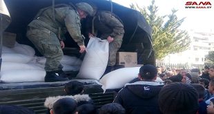 לטקיה – סאנא כתב סאנא מסר כי סיוע הומניטרי מוגש מהצבא הרוסי לחלק אותו למשפחות הנפגעות הנמצאות במרכז המקלט במסגד אלרודה בעיר לטקיה.