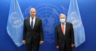 ניו יורק – סאנא שר החוץ הרוסי סרגיי לברוב דן עם מזכ”ל האו”ם אנטוניו גויטרש בניו-יורק בכמה נושאים בינ”ל לרבות המצב בסוריה ,בלוב ובאפגנסטאן, זאת בשולי ישיבות מושב עצרת האו”ם.