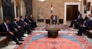 ביירות – סאנא הנשיא הלבנוני גנראל מישל עון קיבל היום את פניהם של שרי החקלאות הסורי המהנדס מוחמד חסאן קטנא, הלבנוני ד”ר עבאס אל-חאג’ חסן, העיראקי מוחמד כרים אל-ח’פאג’י והירדני …