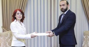 ירוואן – סאנא השגרירה שלא מן המניין של הרפובליקה הערבית הסורית ליד רפובליקת ארמניה ד”ר נורא אריסיאן, הגישה היום את כתבי האמנתה לשר החוץ הארמני אראראת מירזויאן כשגרירה של סוריה. …