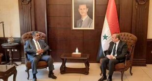 דמשק – סאנא השר של המנהל המקומי והסביבה המהנדס חוסין מח’לוף נפגש היום בדמשק עם ממלא מקום השגריר של מדינת הנסיכויות הערביות המאוחדות עבד אל-חכים א-נועיימי ודן עימו בקשרי שיותף …