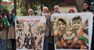 דמשק – סאנא פלגי ההתנגדות הפלסטינית קיימו היום עצרת הזדהות עם העם הפלסטיני ונגד פשעי הכיבוש הישראלי ברצועת עזה מול מעון היונסיף בדמשק. המשתתפים בעצרת קראו להפסקת ההפגזות נגד התשתיות …