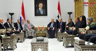 דמשק – סאנא ראש מועצת העם חמודה סבאע’ נפגש היום עם הסנטור מפרגוואי אוסקאר פרנאנדיז והמשלחת הנלווית אליו, ובמהלך הפגישה הודגשה חשיבות חיזוק הקשרים הפרלמנטריים בין סוריה לפרגוואי, בנוסף לביקורי …