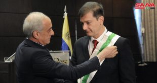 דמשק – סאנא משרד החוץ והמהגרים הקים היום במלון דאמא רוז בדמשק טקס פרידה משגריר ווינצואלה בדמשק ח’וסייה גריגוריו ביומרג’י מוסאתיס לרגל סיום תפקידו כשגריר לארצו בסוריה. בטקס החגיגי העניק …
