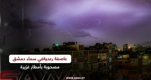 סופת רעמים עם גשמים עזים בשמי דמשק