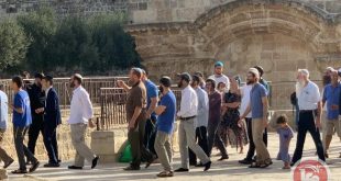 אלקודס – סאנא עשרות מתנחלים פשטו היום על מסגד אלאקצה באבטחתם של החיילים הישראליים סוכנות וופא דיווחה כ-77 מתנחלים קיצונים פשטו היום על מסגד אלאקצה דרך שער המוגרבים, במסגרת סיורי …