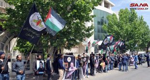 דמשק – סאנא מוסד מוהג’ת אלקודס של החללים, האסירים, הפצועים וועדת ההגנה על האסירים והעצורים הפלסטינים בבתי המעצר של הכיבוש הישראלי ופלגי ההתנגדות הפלסטיניים ארגנו היום עצרת סולידריות מול מעון …