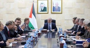 אל-קודס הכבושה – סאנא ראש הממשלה הפלסטינית מוחמד שתיה נפגש היום עם שגרירים ונציגים של מדינות מהאיחוד האירופי והדגיש כי שלטונות הכיבוש הישראלי ממשיכים לשדוד עוד אדמות של פלסטינים כדי …