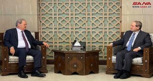 דמשק – סאנא שר החוץ והמהגרים ד”ר פייסל אל-מוקדאד נפגש היום עם נשיא המועצה הלאומית הפלסטינית רוחי פתוח והמשלחת הנלווית אליו.