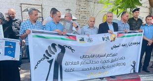 אל-קודס הכבושה – סאנא סוכנות הידיעות הפלסטינית ו’פא מסרה כי עשרות פלסטינים ארגנו היום בקלקיליה עצרת סולידריות עם השבויים הפלסטינים. הסוכנות מסרה עוד כי המפגינים הרימו במהלך הפעילות שלהם את …