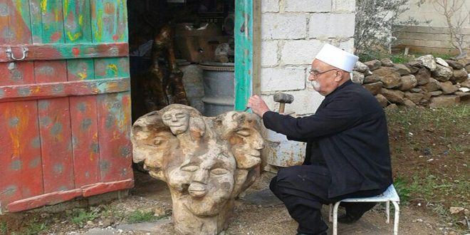 הדוד אבו אדהם … פוסל את החיים בעץ אלון