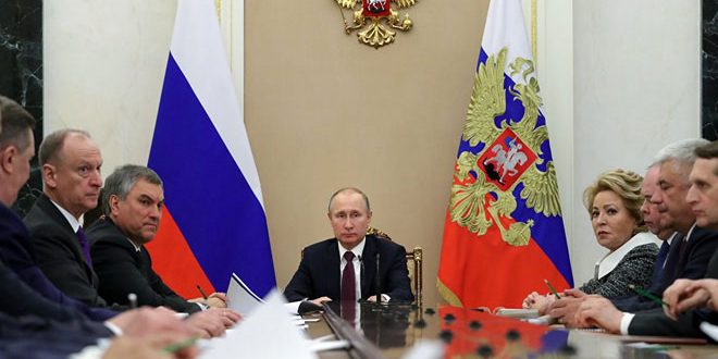 נשיא רוסיה ולדימיר פוטין דן היום עם החברים הקבועים במועה”ב הרוסית, במצב של סוריה אחרי התוקפנות המשולשת האמריקנית-בריטית-צרפתית נגדה.