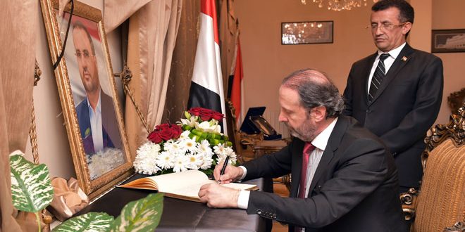 את התנחומים של העם הסורי לבני העם התימני על החלל סאלח אל-סמאד יו”ר המועצה המדינית העליונה אשר נפל באמצעות גיחה אווירית סעודית לפני כמה ימים.