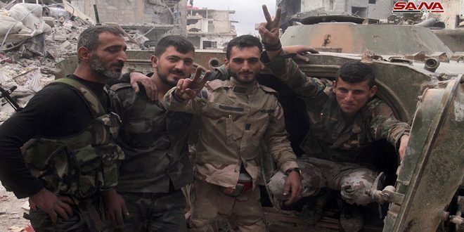 כתב סאנא לענייני מלחמה בדרום דמשק מסר כי חילות האוויר והארטילריה של הצבא הערבי הסורי כבר ביצעו יריות ומכות מדוייקות נגד ביצורי וקיני הטרור בצד הצפוני של שכונת אל-חג’ר אל-אסו’ד, שם כותר השטח שנשאר בידי הטרוריסטים תוך כדי הטקטיקות המעולות של הלוחמים הסורים בהתאם לטבעו הגיאוגרפי של האזור, דבר המפגין את מיומנותם שקנו במהלך מלחמתם בטרור ובמיוחד כשעלה בידיהם להדק את המחנק מסביב לצווארותיהם של הטרוריסטים ובה בעת לנתק את שבילי התגבורת שלהם.