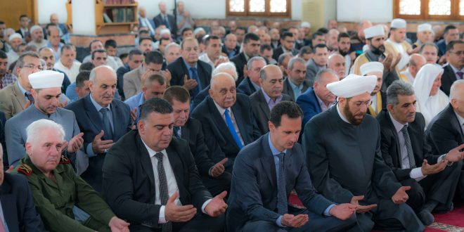 16/06/2018 הנשיא מר בשאר אלאסד התפלל את תפילת חג הפיטר במסגד הגברת ח'דיג'ה במחוז טרטוס 2018-06-16 admin