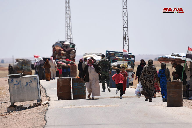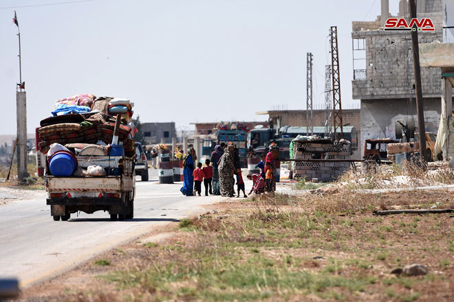 קבוצות חדשות של משפחות עקורות חזרו היום לכפריהן ועיירותיהן שבפרברי חלב ואידלב, שהצבא הערבי הסורי שחרר אותם מידי הטרור דרך מעבר אבו-אלדהור בפרבר אידלב הדרומי-מזרחי.