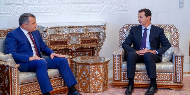 הנשיא בשאר אל-אסד קיבל היום אחרי הצהריים את נשיא הרפובליקה של אוסטיה הדרומית אנטולי ביבלוב שפתח עתה בסוריה בביקור בן 3 ימים.