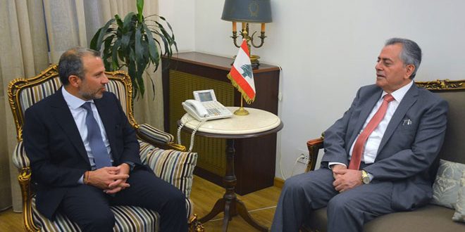 שר החוץ והמהגרים הלבנוני ג’בראן באסיל דן היום בלבנון עם השגריר הסורי עלי עבד אל-כרים בייחסים הדו-צדדיים ובמצב באזור .