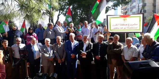 פלגי אש”ף ארגנו מול מעון השגרירות הבריטית בבירה הלבנונית בירות, עצרת מחאה תחת הסיסמה / הצהרת בלפור תוכנית נתעבת ועסקה מאוסה – ועסקת המאה השלימה את ההצהרה הזו /.