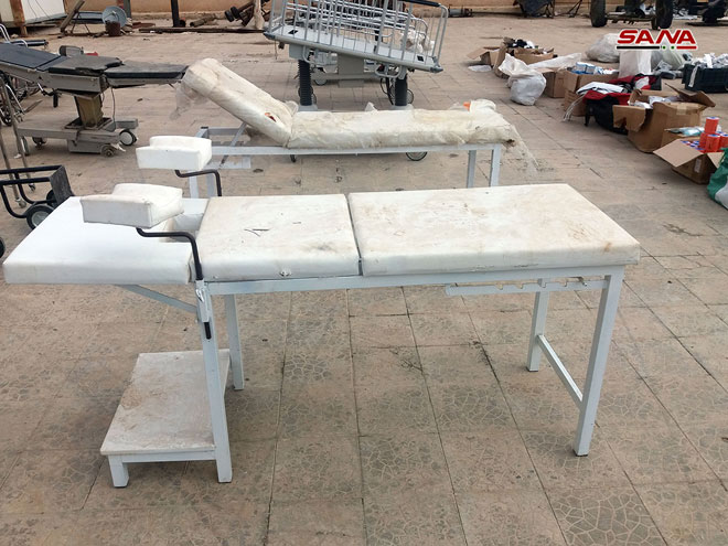 הכתב הבהיר כי נמצאו מערכת למלוי בלוני חמצן ומכשורים לנתוחים ולמעבדות, חדרי נתוחים, כולל בכך ילקוטי עזרה אמריקניים ומכשורים נוספים.