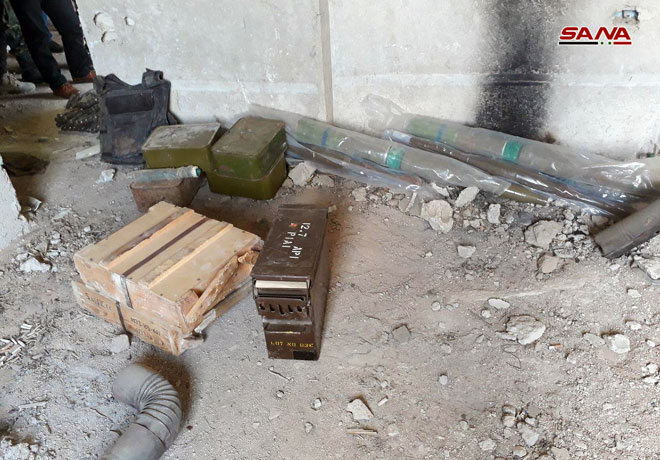 כתב סאנא מסר כי הרשויות המוסמכות מצאו נשק ותחמושת, כולל שרידי טילים אמריקאים של הטרוריסטים בחוות באבילה שבאזור הכפרי של דמשק.
