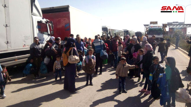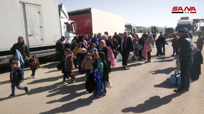 שליח סאנא למעבר נסיב דיווח כי כמה משפחות שבהן עשרות שרובם נשים וילדים חזרו היום ממחנות הקליטה שבירדן כשהם מביאים איתם את המצרכים הפריטים שלהם, והם יועברו באטופוסים ובמשאיות שהחוגים המוסמכים במחוז דרעא ויוסעו אל בתיהם באזורים ששוחררו מהטרור על ידי הצבא הערבי הסורי.
