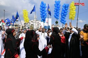תהלוכת צעירים חגיגתית תחת הסיסמה … סוריה האהבה הגדולה