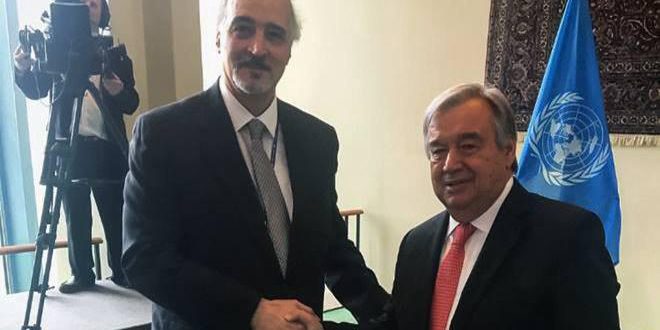 הנציג הקבוע של סוריה ליד האו”ם ד”ר בשאר אלג’עפרי נפגש בניו-יורק עם אנטוניו גותירס מזכ”ל האו”ם והעמיד אותו על עמדתה של הרפובליקה הערבית הסורית המסרבת והמגנה את ההתבטאויות של הנשיא האמריקני דונלד טראמפ שהביע בהן רצונו להכיר בריבונתה של ישראל על הגולן הערבי הסורי הכבוש.