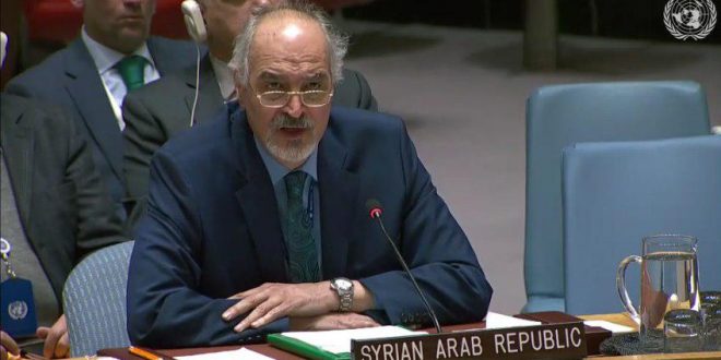 נציג סוריה הקבוע ליד האו”ם ד”ר בשאר אל-ג’עפרי אמר בישיבה שכנסה מועה”ב כי בו בזמן שאנחנו מתכנסים כדי לדון בהכרזת טראמפ הבלתי חוקית בקשר לגולן הסורי הכבוש,מטוסי הקרב של הכיבוש הישראלי בצעו תוקפנות אווירית נגד אזור התעשיה מזרחית לעיר חלב וכי מערך ההגנה האווירית הפיל מספר מהטילים העויינים.
