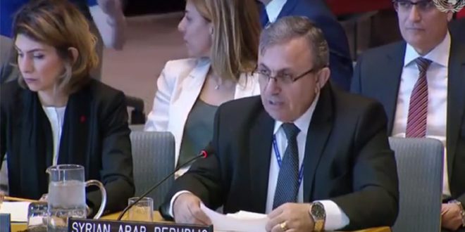 ממלא מקום ראש המשלחת הסורית הקבועה ליד או”ם מונזר מונזר חזר והדגיש במהלך ישיבה של מועה”ב הבינ”ל, את גינוי סוריה להצהרה האמריקנית הבלתי לגיטימית בדבר הגולן הסורי הכבוש בשל שדבר זה מהווה הפרה בוטה לחוק הבינ”ל ולאמנת והחלטות או”ם הרלוונטיות.