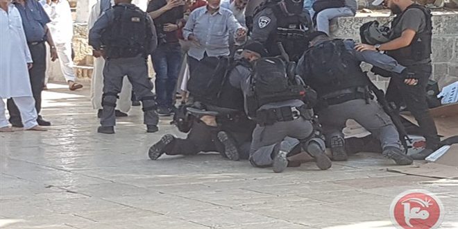 הכוחות הישראליים תקפו היום אחד השומרים במסגד אלאקצה המבורך ואחר כך עצרו אותו.