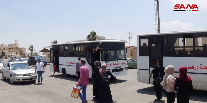 מספר משפחות מהגרות חזרו היום ממחנות הפליטים בירדן לכפריהם המשוחררים מידי הטרוריסטים, דרך תחנת הגבול נסיב שבמחוז דרעא.