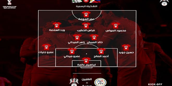 המנהל הטכני של נבחרת סוריה בכדורגל לגברים פג’ר איברהים הודיע על מערך הקבוצה שלנו במשחק הפתיחה שלהם מול הפיליפינים, שייערך היום בשעה 14:30 במוקדמות הכפולות בגביע העולם 2022, ואסיה 2023.