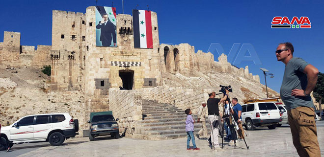 משלחת בת 60 כלי הסברה אירופיים, אסייתיים ולטיניים ביקרה היום במחוז חלב, שם עמדה מקרוב על המונומנטים התיירותיים והכלכליים שלה בנוסף להרס שגרמו הטרוריסטים טרם הובסו משם במקביל למאמצים המושקעים בתחום הבנייה.