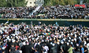 ד”ר אחמד בדר א-דין חסון כבר נשא נאום במהלך טקס ההספדה והדגיש כי רבים כבר באו מסוריה, מלבנון ומירדן כדי להיפרד מאיש זה שהקריב רבות למען המולדת.